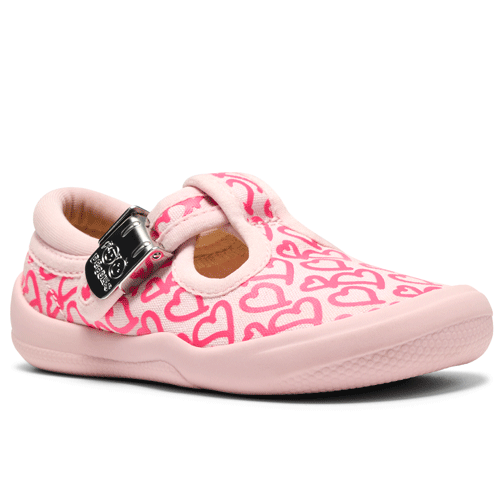 Clarks Doodles ‘Briley Way’ – Girls Buckle Fastening Canvas T-Bar Shoe