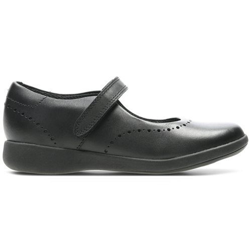 This classic bar shoe design from Clarks is made from a soft leather upper with brogue detailing for added interest. Featuring a velcro fastening bar strap for an adjustable secure fit, this design benefits from a lightweight durable rubber sole offering plenty of flexibility. Finished with an Agion lining and cushioned insole to keep feet feeling fresh and comfortable all day long, this shoe is perfect for school paired with trousers or a skirt.