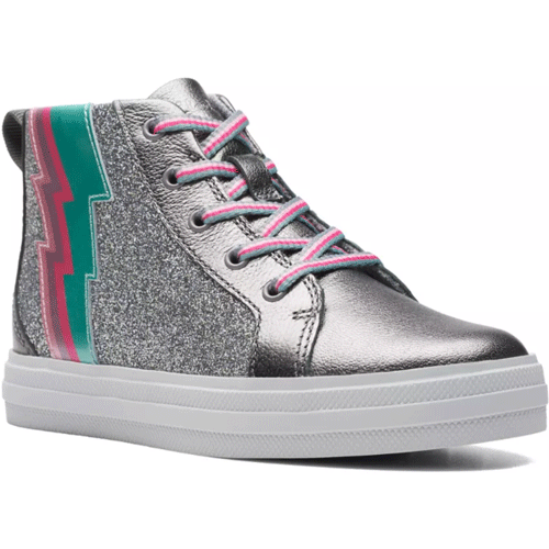 These fun and sparkly ankle boots from Clarks are crafted from a leather and synthetic upper, textile linings and a grippy rubber sole. Benefitting from a cushioned footbed and ankle padding for ultimate comfort, a lace up front for an adjustable and secure fit and an inside zip for easier foot access, these playful ankle boots are both comfortable and practical. Perfect for parties and casual outings too!