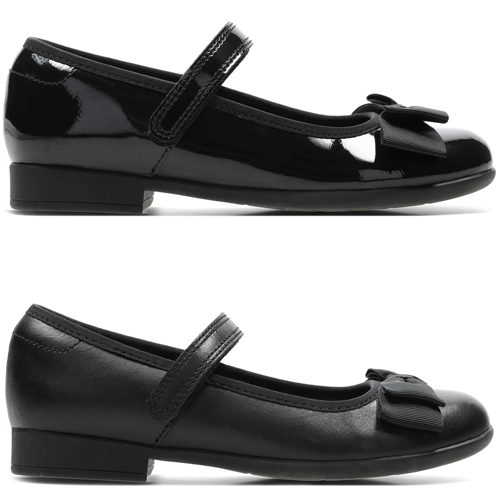 These traditional bar shoes from Clarks are crafted from a premium leather upper with a lightweight and flexible rubber sole. Offering a slim and stylish look this velcro fastening bar shoe is easy to slip on and has a padded collar for additional comfort and is finished with a decorative bow. The foam sock provides additional underfoot cushioning, whilst the antimicrobial Agion lining helps to keep feet feeling fresh all day long.