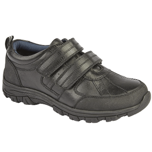 These stylish shoes from Roamers are perfect for school or any smart occasion. Crafted from a soft leather upper with a rubber toe guard, these shoes feature a sturdy TPR sole offering sufficient grip, a comfort cushioned insole and a soft mesh/textile lining. The dual velcro fastening straps create an easy and adjustable fit and the padded collar creates extra comfort around the ankle making them great for all day long wear.