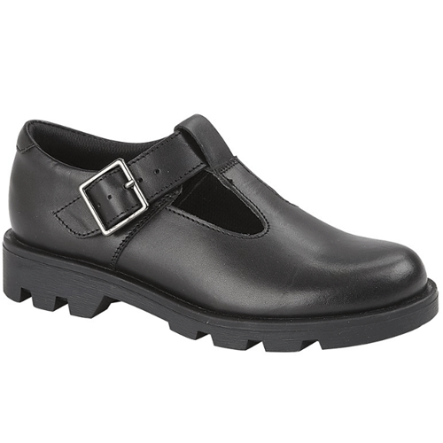 Stylish and comfortable, these girls buckle fastening T-bar shoes from Roamers are crafted from a smooth leather upper. Featuring a mesh lining and a padded top line and insole to add extra cushioning around the ankle and underfoot, this smart shoe has a chunky TPR sole with a deep tread offering plenty of flexibility and grip. Perfect for all day wear in and around the classroom.