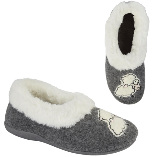 This fun design from Sleepers is made from a soft felt upper finished with a fluffy cuff and a sheep embellishment for added interest. Benefitting from a lightweight and flexible sole, this warm design has a memory foam insole for added comfort and warmth. Ideal to slip on around the house keeping feet warm and cosy.