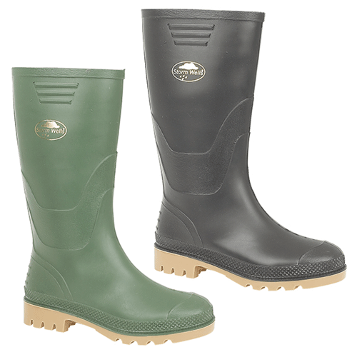 A basic junior wellington from ‘Stormwells’ with a contrasting chunky PVC sole offering plenty of tread/grip. Ideal for outdoor activities, great paired with a pair of wellington socks to keep your feet warm. Approx. average leg height = 20-28cm.