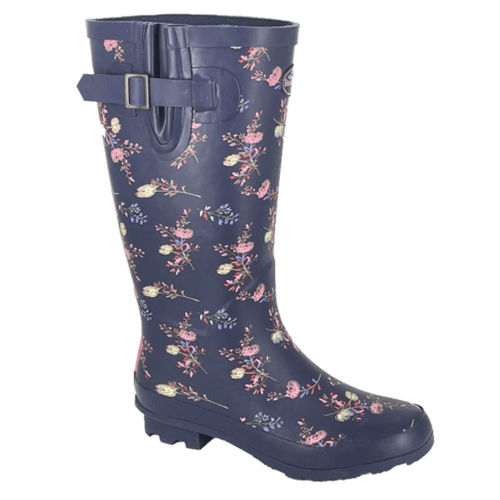 These ladies floral patterned wellingtons from Stormwells benefit from a V-Gusset and strap fastening for an extra wide, comfortable fit. With cleated soles for extra grip and slip resistance, these wellingtons are ideal for all kinds of adventures. Perfect with a nice pair of wellington socks inside!