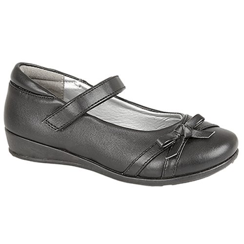 These girls velcro fastening return bar shoes from U.S.Brass are ideal for school or any smart occasion. Crafted from a PU upper detailed with a bow design on the front, they feature a padded insole and collar for extra comfort and support and a flexible TPR sole. Perfect paired with trousers or a skirt and tights.